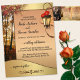 Dreifacher Einladung zur Hochzeit im Herbst mit drei eigenen Lieblings-Fotos mit Rose Gold und Goldherbstdesign mit Laterne und festlichen Schriftzügen. Sie können den Platz auch nutzen, um alle Informationen, die Sie auf einer Gehäusekarte, wie Unterkunft oder Anfahrtsweg etc. setzen würden, hinzuzufügen. Alternativ können Sie die letzte Seite auch als RSVP-Karte verwenden. Der QR-Code ist optional.