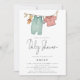 Boho Chic Bekleidung on Washing Line Kinderdusche, Gender-Neutral Dusche mit einem informellen Set-Skript für Baby Shower und die Erholung des Textes können Sie leicht personalisieren.