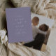 Dieser schicke Lavendel-lila lässige Foto Hochzeitsempfang ist perfekt für eine minimalistische Hochzeit. Das bunte, staubige lila, moderne böhmische Design zeichnet sich durch eine einfache rustikale Kalligraphie mit einem einzigartigen und dennoch klassischen Stil aus. Personalisieren Sie die Rückseite Ihrer Hochzeit laden Sie mit Ihrem Lieblings-Verlobung-Foto ein.