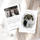 Lassen Sie sich von der zeitlosen Faszination unserer eleganten Hochzeitskamera mit lila Blume-Kranken verzaubern. Diese Karten sind mit zwei fesselnden Momentaufnahmen der Neuvermählten geschmückt und strahlen Grazie und Stil aus. Dreh zurück, um eine herzliche Danksagung zu entdecken und die Freude und Dankbarkeit zu verkörpern, die wir für Ihre Anwesenheit an unserem besonderen Tag empfinden.