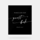 Dieses schicke, moderne schwarze Hochzeitsgast-Gästebuch Acryl-Zeichen ist perfekt für eine minimalistische Hochzeit. Das moderne böhmische Design besticht durch einfache rustikale Kalligraphie mit einem einzigartigen und dennoch klassischen Stil. Perfekt für jede Jahreszeit: Frühling, Sommer, Herbst oder Winter.