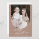 Boho Chic Neutral Foto Boho Familie Weihnachtskarte. Der beige braune Erdenton des modernen böhmischen Designs zeichnet sich durch eine einfache rustikale Kalligraphie mit einem einzigartigen und dennoch klassischen Stil aus. Personalisieren Sie die Vorderseite Ihrer Weihnachtskarten mit dem Jahr, Ihrem Familiennamen und einem Foto. Fügen Sie eine personalisierte Urlaubsgrüßbotschaft auf der Rückseite ein.