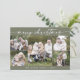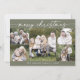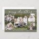 Boho Chic Olive Green Foto Boho Frohe Weihnachtskarte. Der woodsy dunkelgrüne Erdton moderne böhmische Design zeichnet sich durch einfache rustikale Kalligraphie mit einem einzigartigen und dennoch klassischen Stil aus. Personalisieren Sie die Vorderseite Ihrer Weihnachtskarten mit dem Jahr, Ihrem Familiennamen und einem Foto. Fügen Sie eine personalisierte Urlaubsgrüßbotschaft auf der Rückseite ein.