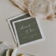Diese schicken Oliven-Grün-Beilagen für die Liebe Hochzeitsnacken sind perfekt für eine minimalistische Hochzeit. Der woodsy dunkelgrüne Erdton moderne böhmische Design zeichnet sich durch einfache rustikale Kalligraphie mit einem einzigartigen und dennoch klassischen Stil aus. Personalisieren Sie Ihre Cocktail-Servietten mit Ihren Namen und Hochzeitsdatum.
