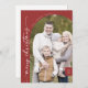 Boho Chic Red Foto Moderne frohe Weihnachtskarte. Das dunkelrote, moderne böhmische Design zeichnet sich durch eine einfache rustikale Kalligraphie mit einem einzigartigen und dennoch klassischen Stil aus. Personalisieren Sie die Vorderseite Ihrer Weihnachtskarten mit dem Jahr, Ihrem Familiennamen und einem Foto. Fügen Sie eine personalisierte Urlaubsgrüßbotschaft auf der Rückseite ein.