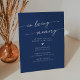 Diese schicke königsblaue Hochzeit in liebevollem Erinnerungsschild ist perfekt für eine minimalistische Hochzeit. Das kühne, dunkelblaue, moderne böhmische Design zeichnet sich durch eine einfache rustikale Kalligraphie mit einem einzigartigen und dennoch klassischen Stil aus. Personalisieren Sie Ihr Trauungszeichen mit den Namen Ihrer verstorbenen Lieben.