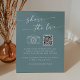 Dieses schicke Meeresfrüchte-aquamarine teilt sich die Liebe QR Code-Zeichen ist perfekt für eine minimalistische Hochzeit. Das farbenfrohe blaugrüne, moderne böhmische Design besticht durch eine einfache rustikale Kalligraphie mit einem einzigartigen und dennoch klassischen Stil, der an den Strand, das Meer und die Sommerküste erinnert. Geben Sie Ihre Webadresse in den QR-Code-Bereich der Vorlage ein, und der QR-Code aktualisiert und verlinkt automatisch auf Ihre Website. Personalisieren Sie das Zeichen mit Ihrem Hochzeitshashtag für das Teilen von Fotos auf sozialen Medien.