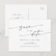 Diese schicke, silbergraue Hochzeit speichern Sie das Datum Einladung Postcard ist perfekt für eine minimalistische Hochzeit. Das skurrile silbergraue und weiße moderne böhmische Design zeichnet sich durch eine einfache rustikale Kalligraphie mit einem einzigartigen und dennoch klassischen Stil aus. Personalisieren Sie Ihre Save the Date Postkarte mit Ihren Namen, Ihrem Hochzeitsdatum, Ihrem Standort und Ihrer Hochzeitswebsite-Adresse.