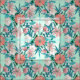 Diese gürtelige Frühlingsgarten-Blume und die üppige Aquarellfarbe, das elegante botanische Muster, die Rose, die Wildblumen, das japanische grüne Bambusblättern und die Pflanze der Früchte mit den Blätter der weißen Blume, blühenden Naturmustern, Rosa, Korallen, Gelb und Grün, über einen Aqua- und Karneval-Glasgrün-Hintergrund, moderne, trendige, trendige Kunst, die für trendige und trendige-Kunst, ideal für alltägliche Kleidung oder Wohngestaltung. Ein stilvolles, trendiges, romantisches Design, einfaches Kunstwerk.