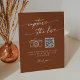 Dieses schicke Boho Terracotta, das das Hochzeitszeichen der Liebe einfängt, ist perfekt für eine minimalistische Hochzeit. Das erdig verbrannte, moderne böhmische Design zeichnet sich durch eine einfache rustikale Kalligraphie mit einem einzigartigen und dennoch klassischen Stil aus. Geben Sie Ihre Webadresse in den QR-Code-Bereich der Vorlage ein, und der QR-Code aktualisiert und verlinkt automatisch auf Ihre Website.