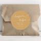 Dieser schicke, gelbe Ringkater-Helfer mit klassischem Rundaufkleber eignet sich perfekt für eine minimalistische Hochzeit. Das farbenfrohe, kräftig gelbe und moderne böhmische Design zeichnet sich durch eine einfache rustikale Kalligraphie mit einem einzigartigen und dennoch klassischen Stil aus. Personalisieren Sie Ihre Gunst-Aufkleber mit Ihren Namen und Hochzeitsdatum.