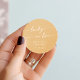 Dieses schicke Gelbfieber-Marigold in Liebe mit klassischem Rundaufkleber ist perfekt für eine minimalistische Hochzeit. Das farbenfrohe, kräftig gelbe und moderne böhmische Design zeichnet sich durch eine einfache rustikale Kalligraphie mit einem einzigartigen und dennoch klassischen Stil aus. Personalisieren Sie Ihre Gunst-Aufkleber mit Ihren Namen und Hochzeitsdatum.