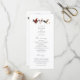 Programme de mariage rustique avec l'aquarelle illustrant les poulets. Les informations sur la cérémonie du mariage et les noms de la fête de mariage sont indiqués sur ce programme.