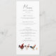 Rustikale und boho Hochzeitsmenü Karte mit Aquarellbild von Hühnern.