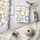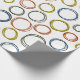 Dieses Verpackungspapier hat ein Boho-Design von überlappenden Kreisen auf Retrofarben grün, braun, blau und grau.