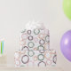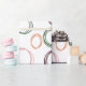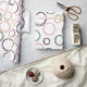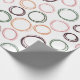 Dieses Verpackungspapier hat ein Boho-Design von überlappenden Kreisen auf Retrosa, lila, moosgrün und karamellorange.