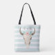 Trendy und chic personalisierter, blumengeschmückter Kuhschädel auf einem Pfefferminzmuster mit weißem Wasser.