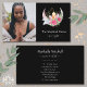 Boho Moon Crystals Feathers Blume Foto Visitenkarte mit schwarzem Hintergrund. Wasserfarbenes böhmisches Design mit Halbmond, Rose Quarz und Zitruskristall Cluster Punkte, rosa Rosen, Grün und weiße Federn. Ideal für Ihr metaphysisches, esoterisches, Wellness-Center, Therapeut, Energiehelfer , Klinik und spirituelles Geschäft. Text bereit für Ihre Informationen. Ersetzen Sie Foto durch Ihr eigenes.