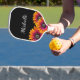 Boho Rustic personalisiert Pickleball Paddel, mit einem farbenfrohen Design auf schwarzem Hintergrund. Mit anpassbaren Skripten können Sie Ihren eigenen Namen hinzufügen. Ideal, um Ihrem Lieblingsspiel eine stilvolle Touch hinzuzufügen.
