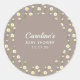 Boho Daisy Chain Taupe Custom Script Baby Dusche Runder Aufkleber