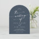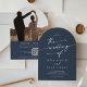 Boho Dark Navy Blue Foto QR Code Arch Wedding Einladung
