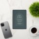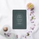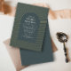 Ein einzigartiges Design mit mehreren zarten Bogen-Linien, die Ihre Hochzeitseinladung in Goldfolie gestempelt, über einen dunkelgrünen Hintergrund