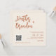 Dites "Je le fais" à un mariage moderne ! Vous planifiez un mariage ? Vous aurez besoin de calligraphie moderne signes de mariage, décorations de table mariages, et QR Code Elegant Calligraphy Faire-part de mariage. Nous offrons des styles de calligraphie modernes pour tous vos besoins. Commandez sur Zazzle et je vous aiderai à créer votre design personnalisé sur un signe mariage, une carte ou un cadeau. Impressionnez vos invités avec une touche unique! Boho Dessert QR Code Mariage Invitation Carré