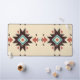 A Southwestern-inspired geometric emblem featuring bold diamond shapes, earthy red and brown tones, and vibrant turquoise accents. The distressed texture adds a handcrafted, vintage feel, giving this design a strong boho-tribal aesthetic.