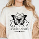 Genießen Sie Ihre Individualität mit diesem wunderschönen boho-inspirierten "Different is Beautiful"-Shirt. Mit einer detaillierten Schwarz-Schmetterling-Abbildung und einer kraftvollen Botschaft verbindet dieses Design minimalistische Ästhetik mit einer böhmischen Touch. Die Schwarz-Weiß-Farbpalette sorgt für ein vielseitiges Aussehen, während der Schmetterling und die geometrischen Akzente ihm ein perfektes Boho-Ambiente verleihen. Ideal für diejenigen, die Selbstdarstellung und Ermächtigung schätzen, macht dieses Shirt eine stilvolle Aussage, ob man sie nun anzieht oder lässig behalte. Zeigen Sie Ihren Boho Geist und feiern Sie die Schönheit, indem Sie anders sind!
