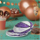 Diese niedliche Boho Sportpapiertafel für ihr Basketballkorb-Party zeichnet sich durch ein stilisiertes Basketballbild aus, das sich abwechselnd lila- und Weißtafeln wiederholt - ein Doodle-Muster aus Paislien, Blume und Federn in Weiß bedeckt die lila Basketballfelder des Basketballs - passen Sie Ihre individuelle Botschaft an - von katz_d_zynes