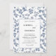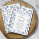 Il s'agit d'un design bohème élégant qui dispose d'un délicat motif en feuille bleu poussiéreux sur un arrière - plan blanc. C'est un design original et facile à personnaliser avec vos propres détails uniques.