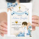 Boho Dusty Blue Flowers Junge Erste Heilige Kommune Einladung Primera Comunión