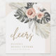 Bewundern Sie die Bräune mit diesen modernen und eleganten böhmischen Weinetiketten aus Brautparty mit einem Bogen, der mit einem Blumenstrauß aus getrockneten Palmblättern, Monstera-Blätter und blütenrosa Pfannkuchen bedeckt ist.