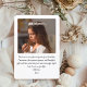 Célébrez un jalon sacré avec un style chaleureux en utilisant notre carte photo Boho Elegant First Holy Communion Merci. Cette carte magnifiquement conçue présente votre photo personnalisée complète en tant qu'arrière - plan, revêtue d'un élégant script blanc moderne qui dit "merci", accompagné d'une délicate croix blanche sous un symbole subtil mais significatif de la foi. Les tons boho floral doux ajoutent une touche de beauté naturelle, alliant élégance moderne et charme rustique. Au contraire, vous trouverez de l'espace pour une autre photo personnalisée et un message de remerciement personnalisé, faisant de cette carte un souvenir précieux pour la famille et les amis. Parfait pour exprimer sa gratitude à ceux qui ont partagé la journée spéciale de votre enfant, cette carte est aussi unique et mémorable que la célébration elle-même.