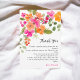 Ein boho chic orange, rosa und grüne florale Aquarell Brautparty danke Karte mit hübschen handgemalten Blume in und blüht mit grünem Blattwerk. Ein hübsches Garten Party Brautparty mit einem modernen Skript-Schriftart Bürste.