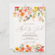 In diesem Rahmen stellen wir Ihnen unsere charmante Boho Herbst Floral Wedding Invitation vor, eine wunderschöne Mischung aus lebhaften, handbemalten Blume in Rosa, Orange, Gelb und Grün. Dieses elegante Design besticht durch üppige Blüten, die von oben und unten kaskadieren und Ihre Hochzeitsdetails mit einer Touch der Schönheit der böhmischen Natur gestalten. Der moderne, elegante Pinselskript-Schriftart ergänzt das romantische Blumenmotiv um eine raffinierte und persönliche Touch. Ideal für einen Sommer oder eine Hochzeit im Herbst, diese Einladung Set den Ton für eine fröhliche und unvergessliche Feier. Personalisieren Sie es mit Ihren Hochzeitsdetails, um einen einzigartigen und unvergesslichen Sake für Ihre Gäste zu schaffen.