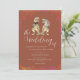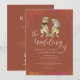 Boho fall Terracotta burnt orange Rust and beige Cream Dinosaur Wedding Invitation Fun Modern T-Rex Bride and Groom Design