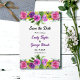 Diese elegante Blumenhochzeit erspart die Einladung zum Datum und ist ideal für eine moderne Blumenhochzeit im Sommer. Das romantische Design besticht durch farbenfrohe Aquarellfarben mit eleganter Schwarztypografie auf weißem Hintergrund.