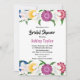 Die elegante Blumendusche lädt zu einem modernen Frühlingsblumen-Brautparty ein. Das romantische Design ist in blauen, gelben, lila und bordeauxfarbenen Rose gehalten, die mit eleganter schwarzer Typografie auf weißem Hintergrund verziert sind.