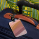 Das Gepäckstück Boho Abstrakt Retro Name ist in sanften Farbtönen wie Lavendel, Rosa, Rosa, Rosa, Ton, Terrakotta, Lilve und Lavendel gehalten.