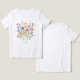 Dieser stilvolle, weiße T - Shirt mit einem Bouquet hübscher, blauer, lila, rosafarbener und gelber Wildblumen mit hübschen grünen Blätter. Fügen Sie Ihren Namen oder Ihre Monogramm hinzu.