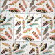 Hübsche Boho-Federn in den Farben aquamarin blau, gold, dunkelgrau, staubig pink und creme schweben auf einem weißen Hintergrund auf diesem einzigartigen Stoff. Ideal für viele Haushalts- oder Handwerksprojekte oder Kleidung.