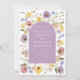 Cette invitation de mariage de printemps Fleur sauvage Boho saisit l'essence d'une célébration de printemps fantasque avec ses fines flancs d'aquarelle et son écriture élégante avec dans une belle fenêtre d'arche violet. Les teintes pastel douces du bleu, du violet, du lilas, du rose poussiéreux, de la pêche et de la danse jaune à travers le design, évoquent une atmosphère de printemps rêveuse et romantique. Les fleurs sauvages luxuriants, associés à de l'herbe gracieuse et des accents feuillus, créent un parfait mélange de nature et d'élégance. Idéale pour les couples à la recherche d'une esthétique unique et libre d'esprit, cette invitation offre des modèles faciles à personnaliser, vous permettant d'ajouter vos détails sans effort et de le faire vraiment vous-même. Que vous planifiez une cérémonie de jardin intime ou une aventure en plein air, cette invitation apporte une touche de beauté sereine à votre journée spéciale. OEuvre originale de l'artiste Catherine Sweetman