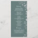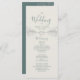 Élégant, boho, fleur sauvage, botanique, programme de mariage vert sauge avec coeur de corde argent et dentelle vintage dorée fleurie.