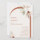 Bohemische Blumendach Bridal Dusche Einladung. Blume im Bohoner Stil, Pampas-Gras und zartes grünes Blattwerk auf beige- und terracotta-orangefarbenem Hintergrund.