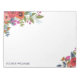 Weißes Notizblock mit wunderschönen Bouquets böhmischer Blume in zwei Ecken. Fügen Sie Ihren Namen in modernen marineblauen Buchstaben hinzu.