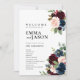 Programme de mariage floral Boho Burgundy et Blush. Cette Carte est caractérisée par des roses boho bordeaux et rougis et des fleurs avec deux polices de haute classe modernes qui façonnent les tendances des événements festifs actuels et futurs.
