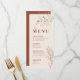 Dieses Menü zeichnet sich durch einen Boho-Stil, Blumenkunst, neutrale Erden- und Beigetönen aus, mit einer Mischung verschiedener Schriftart-Stile, oft in verschiedenen Größen, um ein einzigartiges, eklektisches Aussehen zu schaffen, das diese Menüs zu einer natürlichen Ästhetik macht.