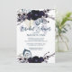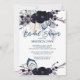 Belles fleurs bleues et violettes ornées de plumes avec un chic moderne lettré à la main accueil douche nuptiale