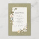 Dieses schöne delikate Design der Hochzeitsempfangskarte ist elegant und dennoch einfach. Es verfügt über einen zarten Doppelrahmen mit getrockneten Blume aus weichem Pfirsichrot, Creme, Tans und Grüntönen mit einem angeschlagenen, schlängelgrünen Rahmen. Der Hintergrund ist ein ergänzendes Not leidendes Weissgrün. Dieses Design ist Teil der Dried Boho Floral Frame Green Wedding Suite Kollektion erstellt von Simply Farmhouse Press.